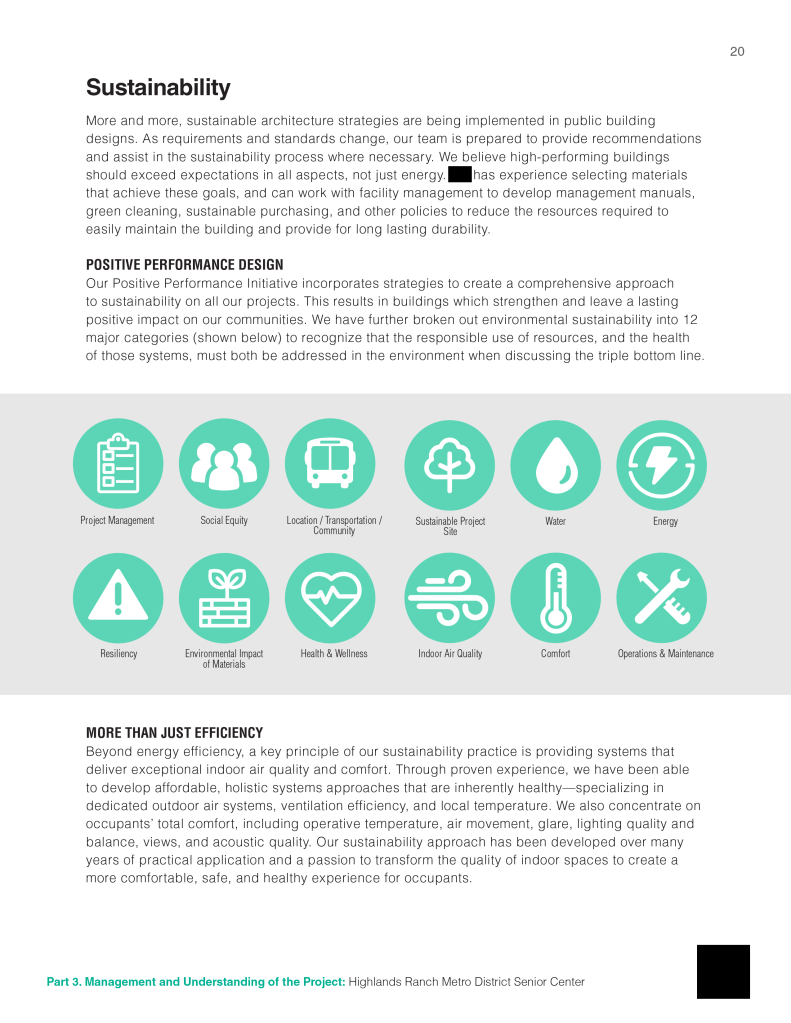 Managed pursuit process from prepositioning to proposal kickoff to interview. Responsible for the creation of proposal graphics, branding, copywriting/editing, completion of forms, and ultimate submission.